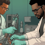 Eddie’s world shatters when he discovers their inventions are used for sinister purposes, turning mercenaries into super-soldiers. He learns his partner, Cesar, is complicit in this betrayal. Fueled by rage and betrayal, Eddie escapes a failed attempt to destroy the lab, gaining a unique ability through an ear implant experiment gone awry.